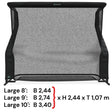 - Large 10': Breite 3,40 m x Höhe 2,44 m x Tiefe 1,07 m