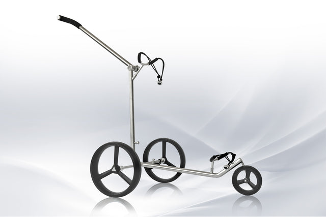 Der sportliche Schiebetrolley aus Edelstahl PG-Powergolf Explorer Steel - Tolles Design gepaart mit kleinstem Packmaß, überzeugt jeden sportlichen Golfer. Mit den zwei Schnellverschlüssen zerlegen Sie den Trolley mit wenigen Handgriffen. Er ist der ideale Begleiter auf jeder Golfreise.