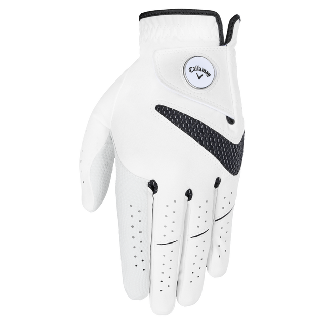Les gants de golf pour hommes CALLAWAY Syntech offrent une excellente combinaison de confort, de durabilité et d'ajustement. Le faux daim de qualité supérieure et le matériau exclusif FUSETECH™ garantissent des performances idéales, tandis que la fermeture réglable Opti Fit™ assure un ajustement sûr. Le gant est également doté d'un marqueur de balle double face qui intègre la technologie Triple Track™ pour améliorer vos performances de jeu.