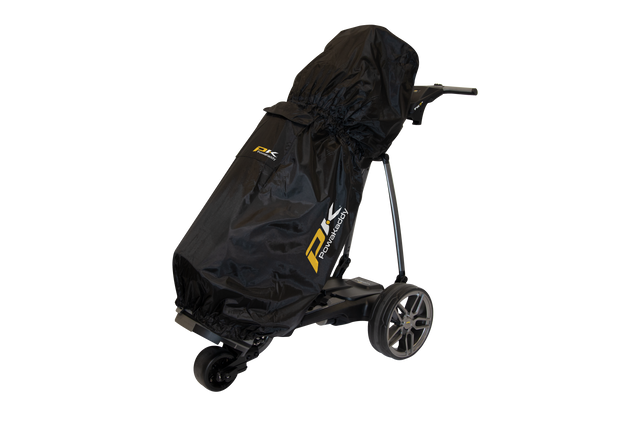 La housse de pluie imperméable PowaKaddy garde le sac de golf et l'équipement au sec.