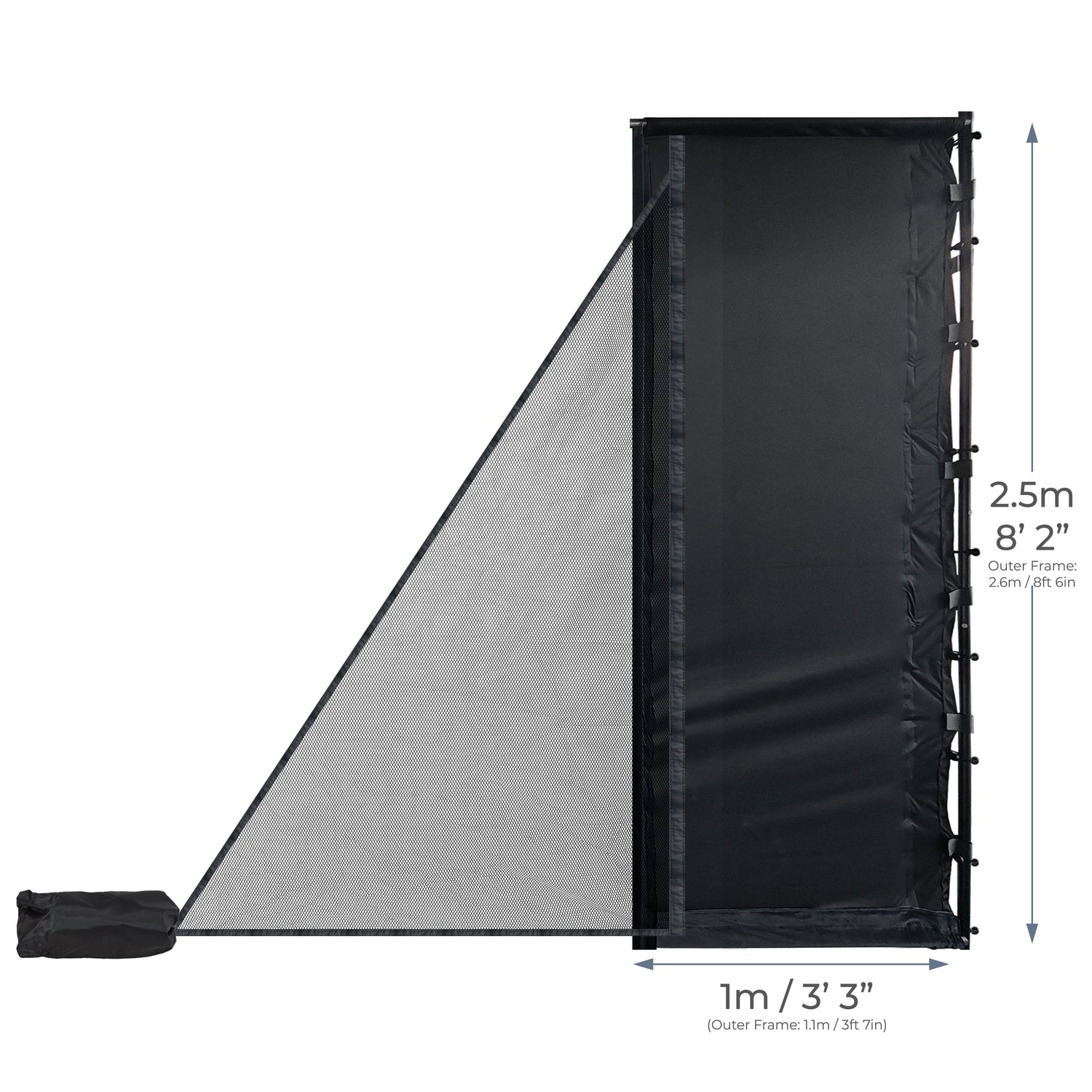 Der hochwertige Leinwand-Screen besteht aus strapazierfähigem Polyester mit zwei Lagen Stoff — ideal für starke Drives und häufige Nutzung. Die Seitenwände und das Dach bestehen aus edlem Velours-Material, das nicht nur wertig aussieht, sondern auch Geräusche bei Ballaufprall deutlich reduziert. Die stabile Rahmen- und Netzstruktur sorgt für sicheren Halt und zuverlässige Performance.