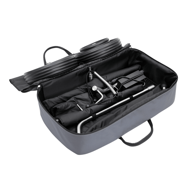 Le sac de transport XS pour le TiCad Goldfinger se compose d'un tissu en nylon noir robuste et d'un insert en mousse stable pour protéger contre les dommages de transport. En raison de la prise particulièrement ferme de toutes les pièces individuelles, il est parfait pour transporter votre chariot lors de vos déplacements.