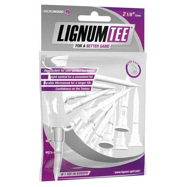 En raison de son procédé de fabrication unique et des matériaux utilisés, le LIGNUM TEE n'est comparable ni à un tee en bois conventionnel ni à un tee en plastique. Lors d'un bon coup moyen, la tête du club frappe la balle à une vitesse d'environ 35 m/s. Lors du contact avec la balle, cette vitesse est réduite d'environ 6 à 8 m/s en raison du frottement et de la résistance. Grâce à la flexibilité accrue du LIGNUM TEE, la vitesse de lancement de la balle est augmentée jusqu'à 20 % par rapport aux tees conventionnels en bois ou en PVC. Les marches intégrées pour le contrôle de la hauteur permettent au golfeur un contrôle parfait du swing.